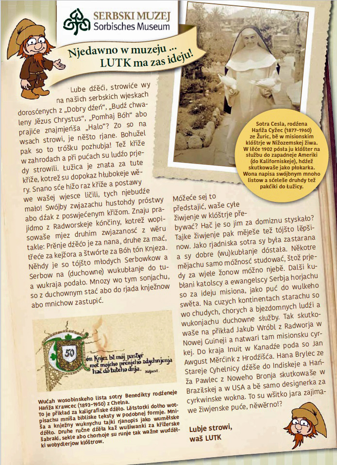 Měsačnje napisa lutk do dźěćaceho časopisa “Płomjo”.